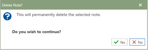 4.Carefully read the Delete Note? confirmation message and then click the green Yes or red No buttons to proceed.