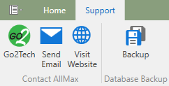 The Support ribbon provides access to technical support information and is enabled or disabled based on current support status expiration.