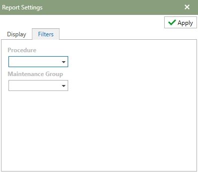 All reports that are associated with Work Orders and Procedures can be found in this group. Click on a report tile to open the report in Report Preview.